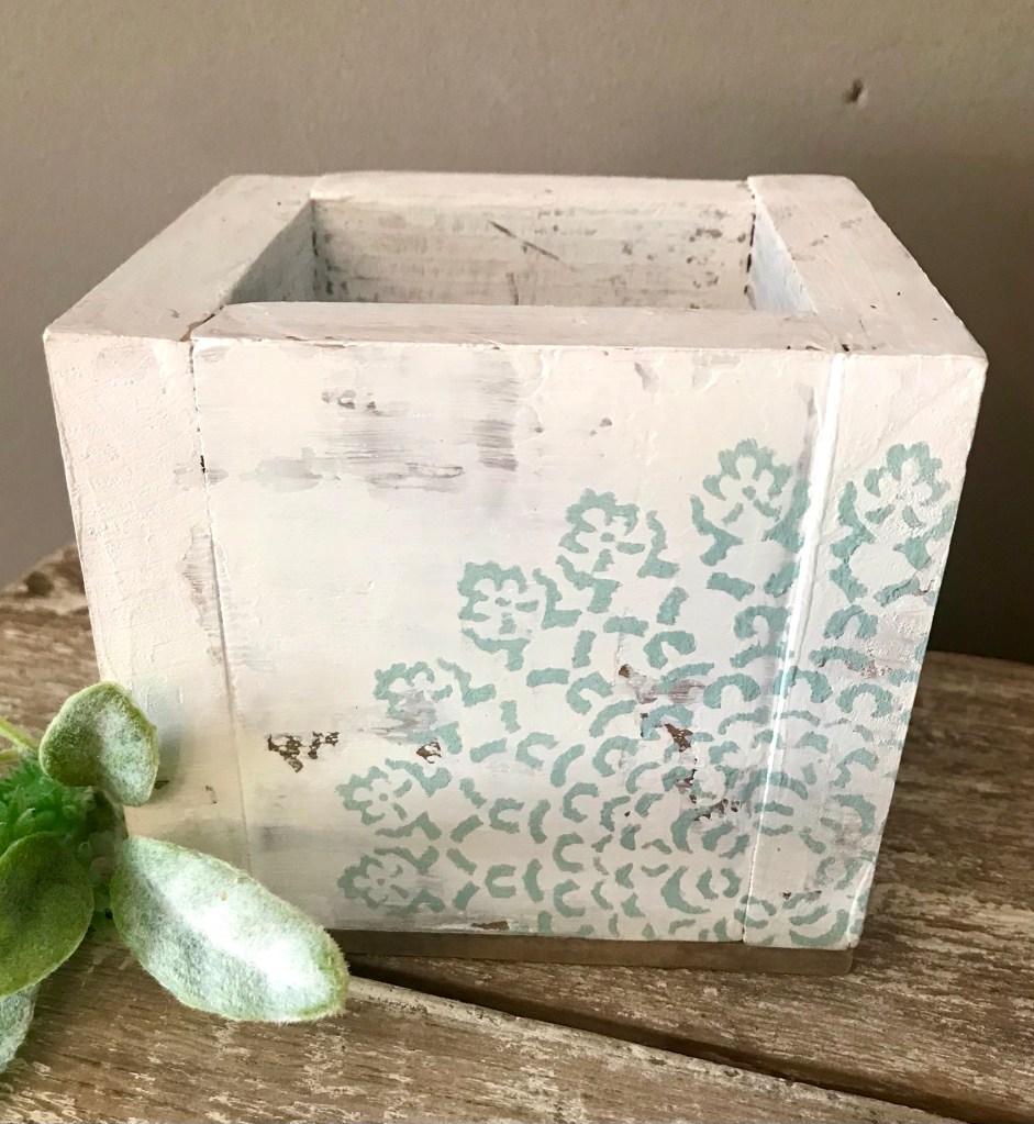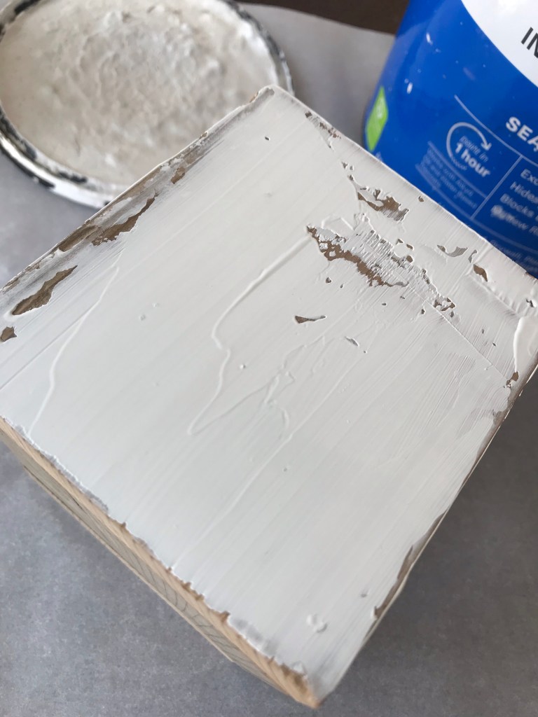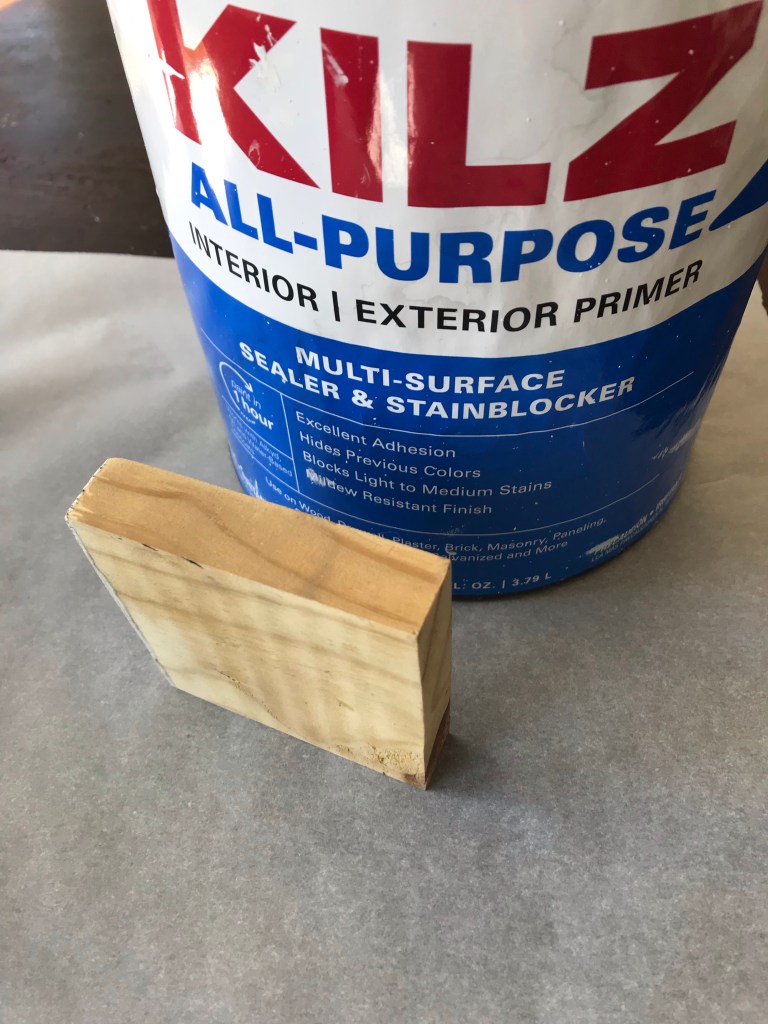 Yep, just something with a fairly smooth edge and and an easy size for you to hold (this is like a 3×3” block). For paint, choose something with a primer in it for best adhesion or just use a white primer if you want the result to be white anyway.