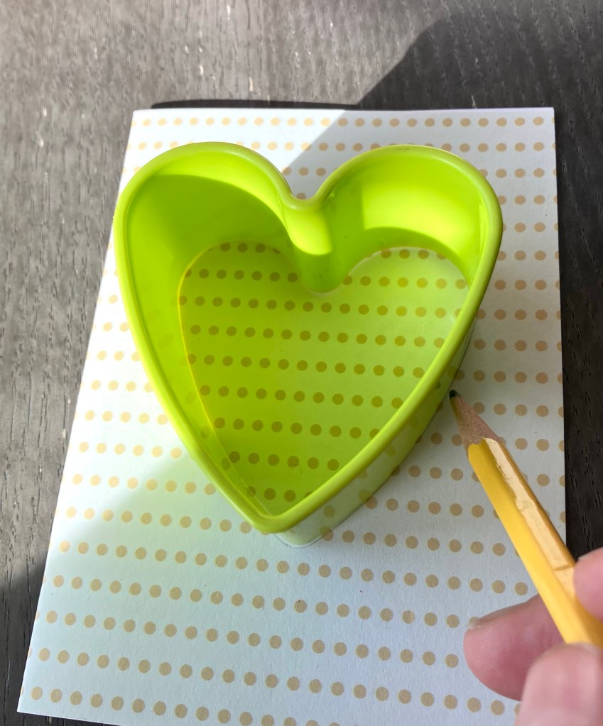 2. Select a paper to be the one for weaving and lightly draw an outline of your heart (or whatever shape you want to weave)