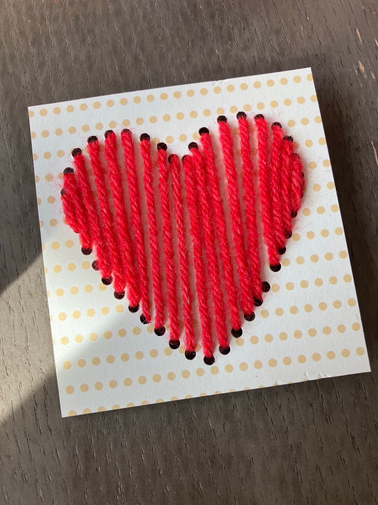 I always love making my own Valentine Cards and this year’s are super simple, from a couple of things I already had- cardstock and yarn.